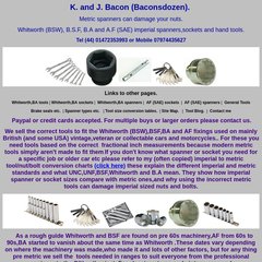 - baconsdozen.co.uk British Standard Whitworth tools for classic cars and bikes.
